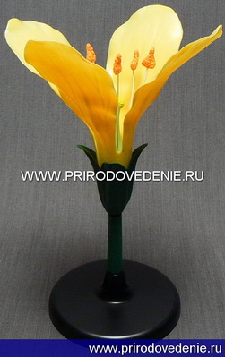 Модель представляет собой увеличенный цветок капусты. Она изготовлена из пластмассы и установлена на подставке. Высота модели в сборе ≈ 33см. Модель состоит из следующих деталей: - цветоножка; - цветоложе; - пестик с тычинками; - 2 двойных лепестка.