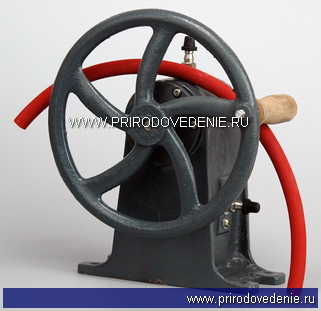 Прибор представляет собой масляный поршневой насос, основанный на откачке воздуха. Движение поршня обеспечивается шатунно-кривошипным механизмом, соединённым с ручным приводом. Насос позволяет создать разрежение воздуха до 400Па и давление до 0,4МПа. Остаточное давление, создаваемое насосом – до 133Па. Перед началом работы с насосом, нужно снять резиновую трубку с обоих ниппелей. Для работы насоса надеть резиновую трубку на всасывающий ниппель, если предполагают производить разрежение; если предполагают производить давление, то – на нагнетательный.