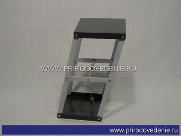 Прибор состоит из трех горизонтальных пластин, шарнирно соединенных между собой четырьмя рейками, что дает возможность наклонять призму под разными углами к горизонту. В средней пластине в центре тяжести укреплен отвес. Позволяет продемонстрировать условие устойчивости тела, опирающегося на горизонтальную площадку, и опрокидывание его при смещении центра тяжести за пределы опоры.